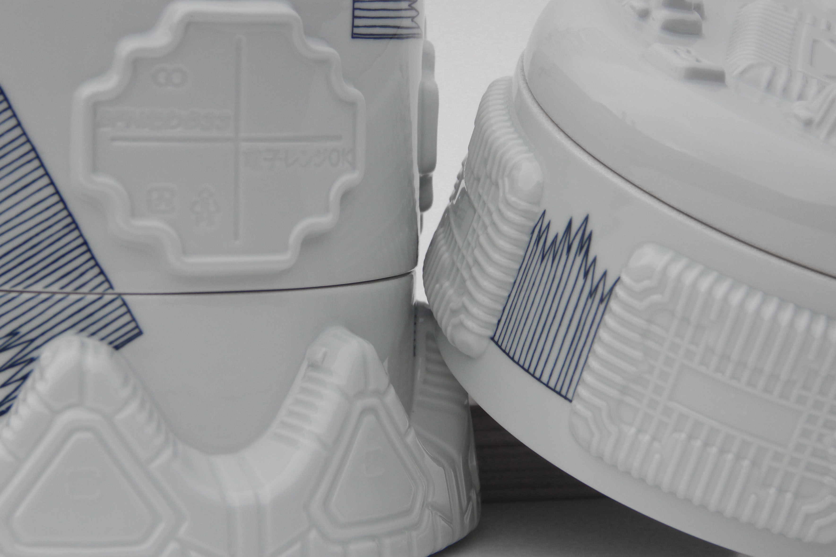 This exploration of Arita porcelain, uses Japan’s blend of tradition and playful modernity as a lens to reimagine ornamentation’s place in contemporary European design. As a re-interpretation of the traditional “danjü” stacking box, they serve as a modern “comprador bottle”, the containers that were us to export Japanese produce to the Netherlands during the Edo-period. This message aims to revive an appreciation for ornament and detail in modern life, a culture where decorations have been deemed “unnecessary”. By integrating the industrial imprints of single-use plastics, I grasp for the last trace of ornamentation - a reminder of the beauty lost, in the pursuit of pure efficiency. Meanwhile accepting, that the materiality of these containers let them live far beyond their intended purpose.